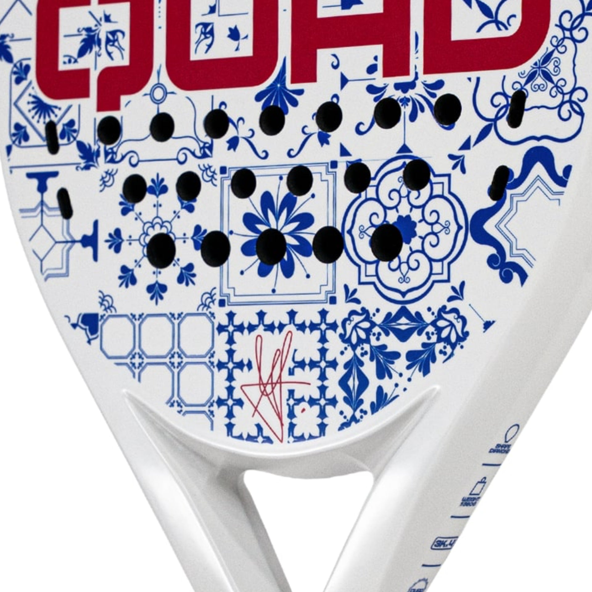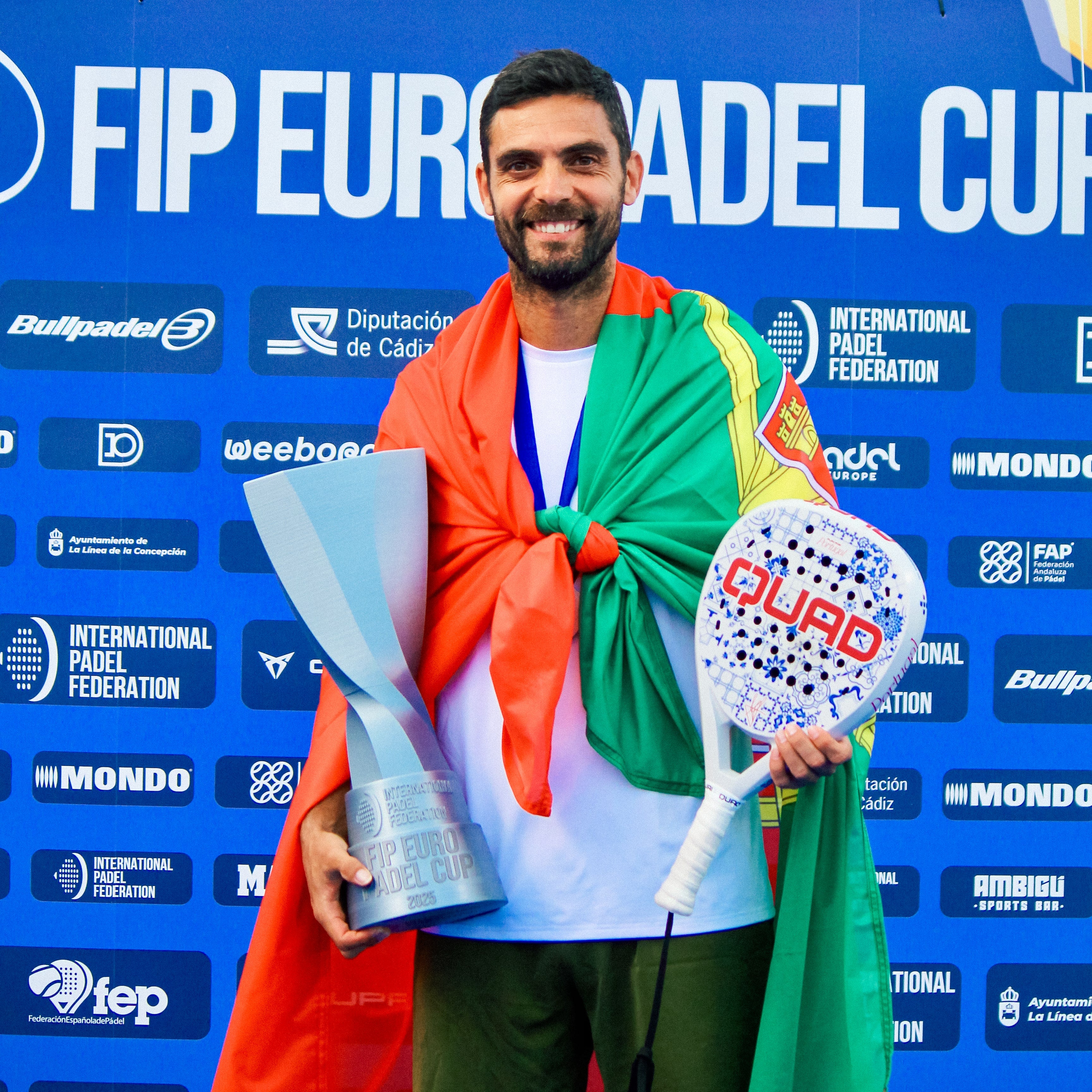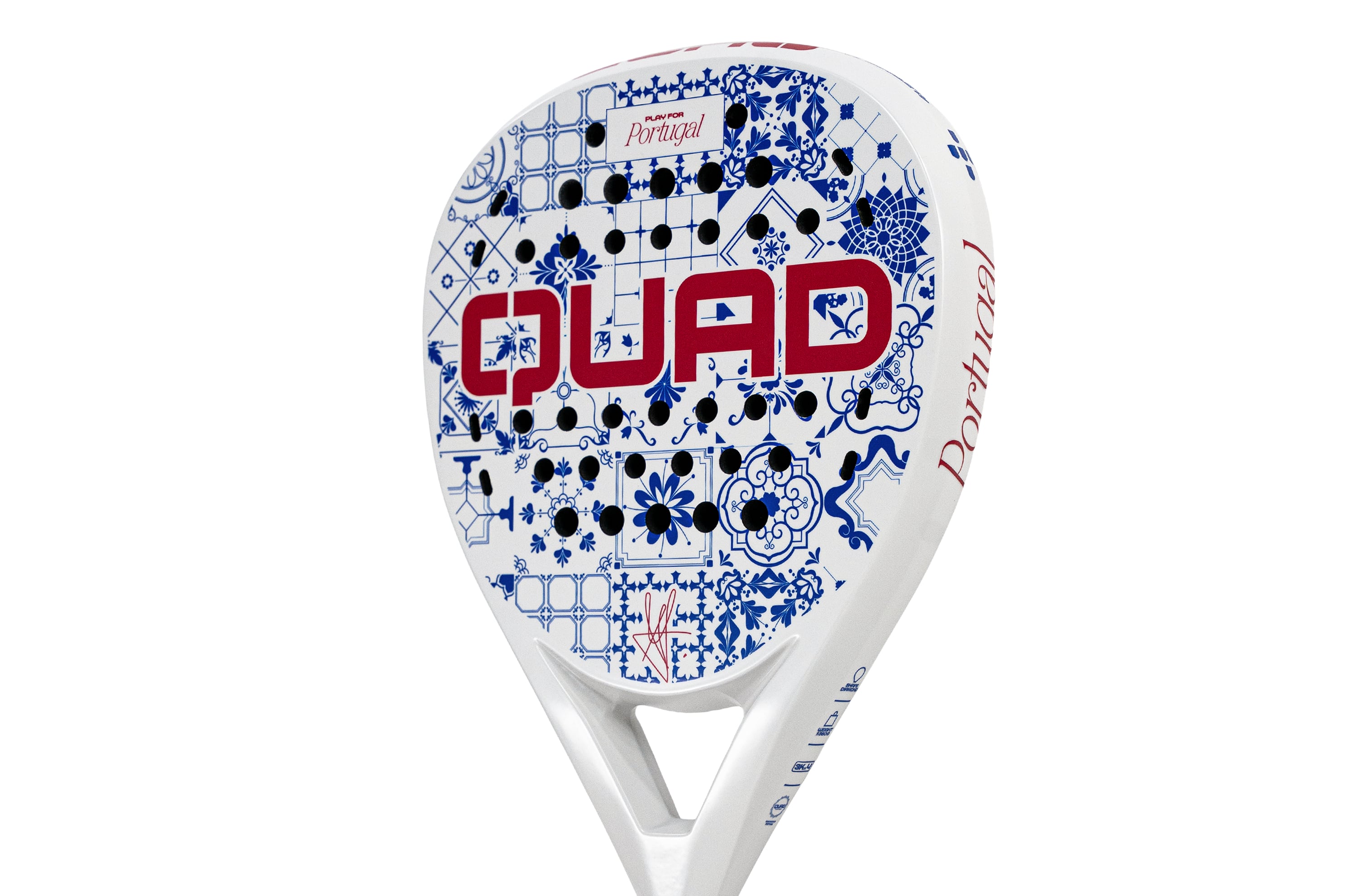 O mais recente lançamento da QUAD, é uma celebração da presença da marca no Campeonato Europeu de Padel. A Raquete do Europeu é um símbolo da união entre alta performance e identidade nacional, desenvolvida especialmente para os nossos atletas Pedro Perry, Antonio Luque e Clarinha Santos. É uma edição limitada que incorpora a força, a precisão e a elegância do Padel português ao mais alto nível competitivo.