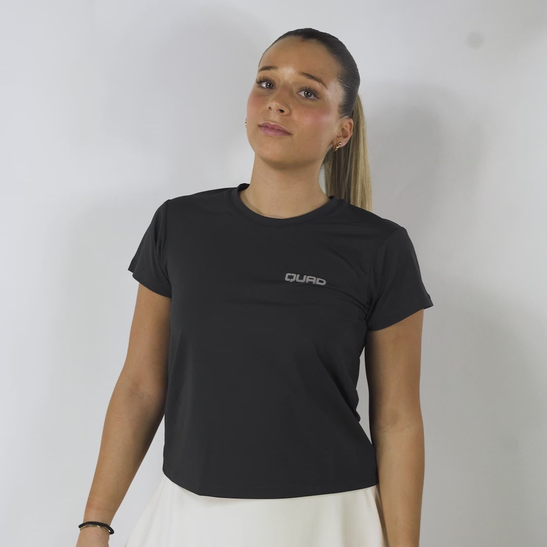 Com um design moderno e funcional, a T-Shirt apresenta um caimento que valoriza a silhueta feminina sem limitar a liberdade de movimento. O corte foi pensado para acompanhar os gestos ágeis do jogo, proporcionando conforto total do início ao fim do jogo.